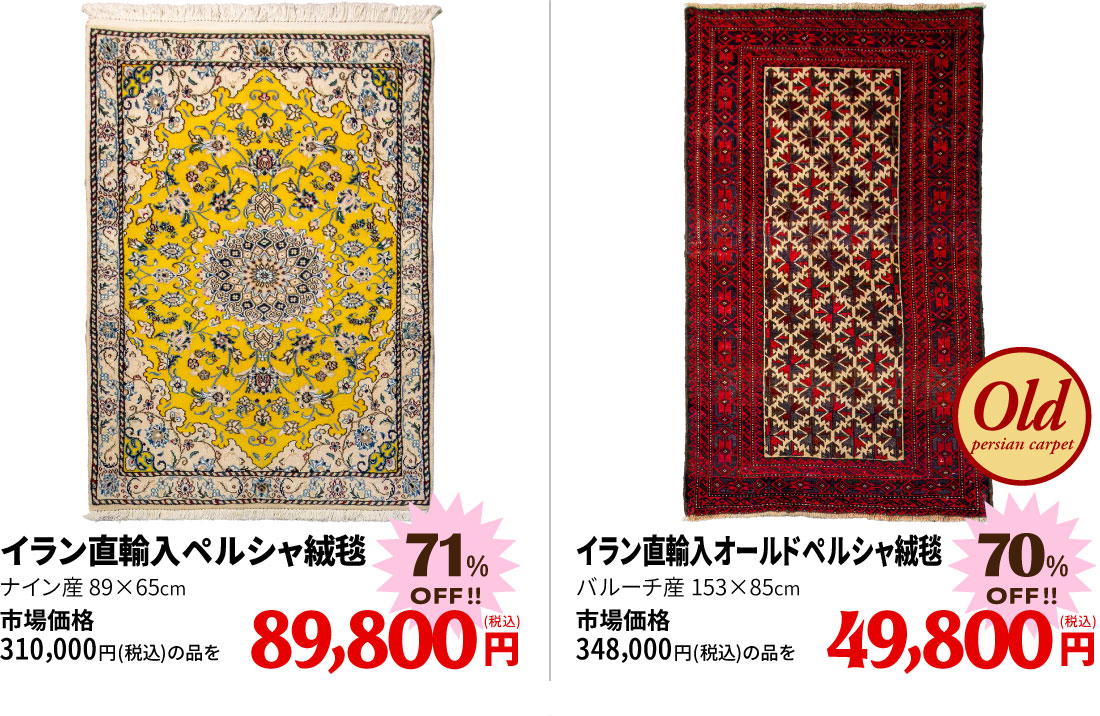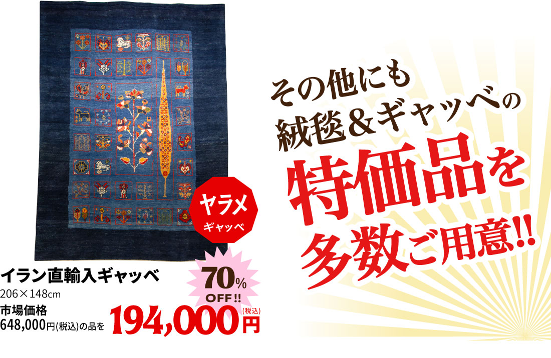 《イラン直輸入品》を徹底大処分! 直輸入ペルシャ絨毯&ギャッベのビッグSALEを、WEB限定で開催いたします!